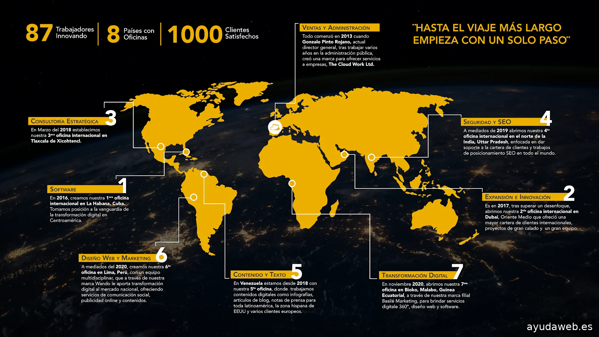 Somos un holding empresarial multinacional con la misión de transformar digitalmente empresas por todo el mundo. Nuestros servicios principales son el desarrollo software, diseño web, marketing digital, diseño gráfico, comunicación integral y consultoría de empresas. Tenemos más de 11 empresas en el holding, que trabajan de forma especializada nuestras verticales. Contamos con oficinas en 5 países y somos más de 50 personas. Llevamos más de 5 años brindando transformación digital a empresas y ahora con el grupo ofrecemos un partner integral para la evolución correcta de la empresa, desde que empieza hasta que se hace grande. España, el Caribe, Emiratos Árabes y La India ; son nuestra casas pero trabajamos en todo el mundo.
