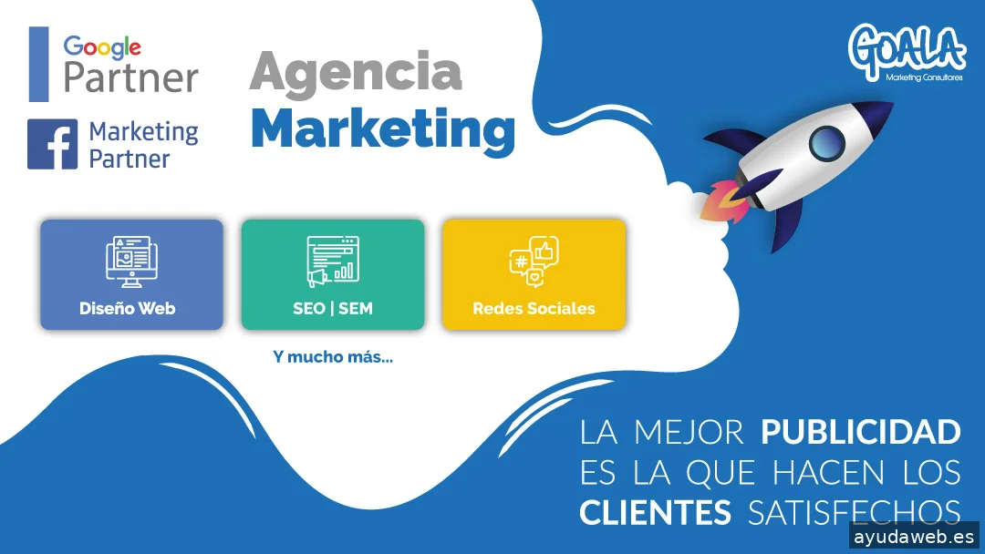 Somos una Agencia de Marketing ubicada en Yecla especializada en Diseño de páginas web y diseño de tiendas online. Ofrecemos ayuda completa en todos los servicios que el cliente pueda necesitar para conseguir el objetivo de mejorar en el marketing digital de su empresa. Además estamos especializados en los siguientes temas: Publicidad en Google Ads, de la que somos Google Partner. Elevamos tus ventas. Posicionamiento Orgánico en buscadores. SEO. Mejoramos tus resultados. Gestión de redes sociales para dar visibilidad y trabajar la marca de tu empresa. Publicidad en Las Plataformas de Meta como Facebook e Instagram. Nuestro enfoque es cliente, trabajando mano a mano con él, de forma cercana para lograr los mejores resultados.