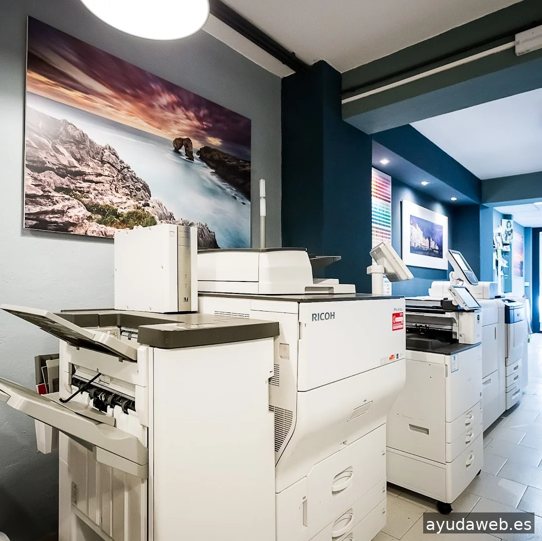 Impresión de papelería y publicidad. Impresión de carteles, flyers, tarjetas, trípticos, folletos, cartas, menús, diplomas, invitaciones, acetatos, etc. Impresión bajo demanda a partir de una unidad sobre diversidad de materiales, dato variable, etc. Impresión en alta calidad para trabajos de cartelería y fotografía, displays y soportes publicitarios. Stands, ferias y exposiciones. Impresión y corte de vinilos, lonas, pvc… Vinilos de corte e impresión, vinilos para paredes y suelos, rotulación de escaparates y fachadas. Rótulos, luminosos, rotulación de vehículos, etc. Impresión offset para grandes tiradas, impresión de libros, revistas, catálogos de venta, memorias, folletos, encartes, papelería, etiquetas, marcado y packaging.
