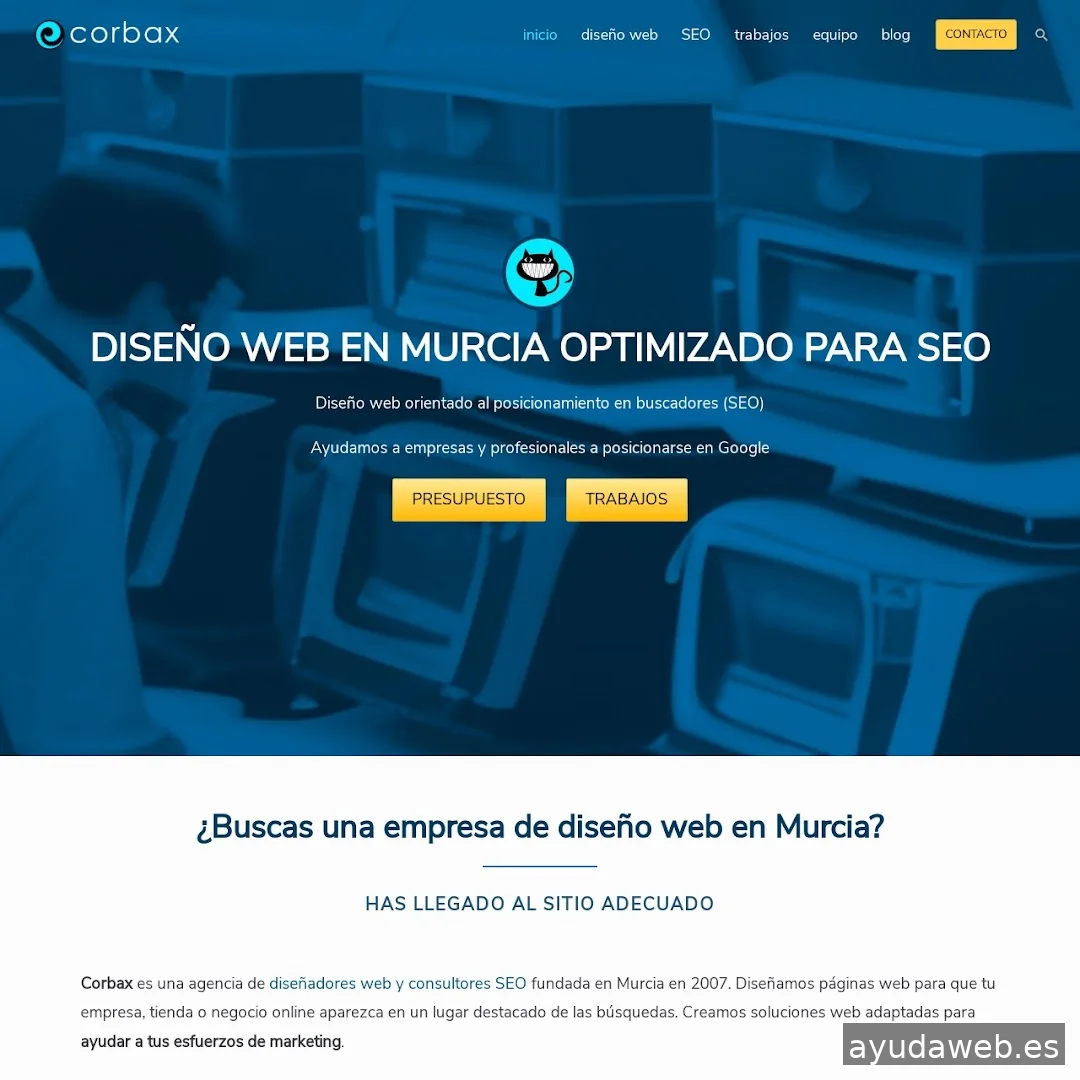 Diseñamos páginas web orientadas al SEO para ayudar a empresas y profesionales a posicionarse en Google. Somos diseñadores web y consultores SEO en Murcia desde 2007. Queremos diseñar tu web y que aparezca en un lugar destacado de las búsquedas. Trabajando contigo haremos una página web sencilla de gestionar, elegante y fácil de navegar. Adaptada a los mejores estándares web y continuamente actualizada a las últimas tecnologías. Pero nuestro trabajo no acaba en el diseño o actualización de tu página web. Además de poner a tu disposición una dilatada experiencia en diseño de páginas web en Murcia somos expertos en SEO y consultores de marketing online especializados en pequeños negocios, pymes y profesionales independientes.