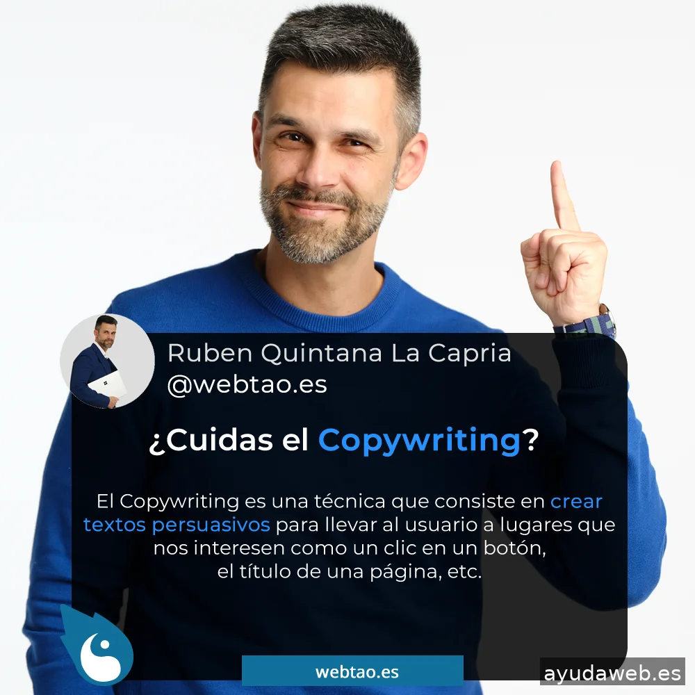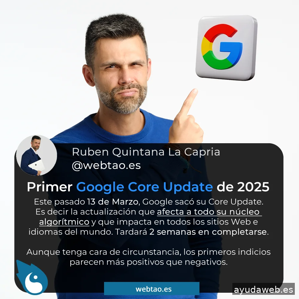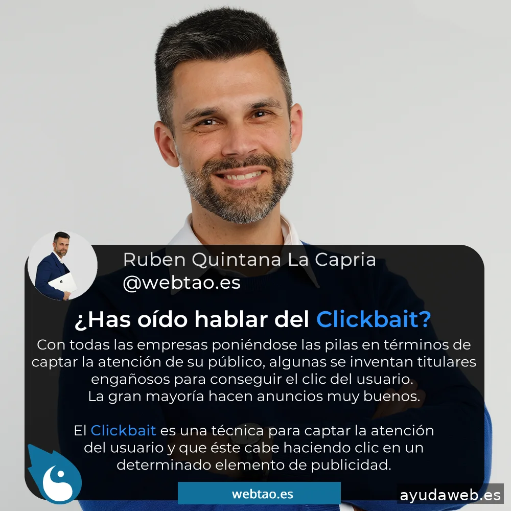 Hola, soy Ruben Quintana La Capria de la agencia de SEO en Las Palmas: WebTao. Soy natutal de Las Palmas de Gran Canaria, hago Webs desde el 2003. Desde entonces me he especializado en el Posicionamiento Web SEO, ya que es lo que a mis clientes les va a ayudar a atraer tráfico cualificado y conseguir clientes a través de este servicio. También me he especializado en el desarrollo y diseño de páginas Web profesionales, así como tiendas onilne con comercio electrónico para ayudar en las ventas de los productos de mis clientes. También posicionamos canales de Youtube que refuerzan el SEO global de nuestros clientes en los diferentes buscadores.