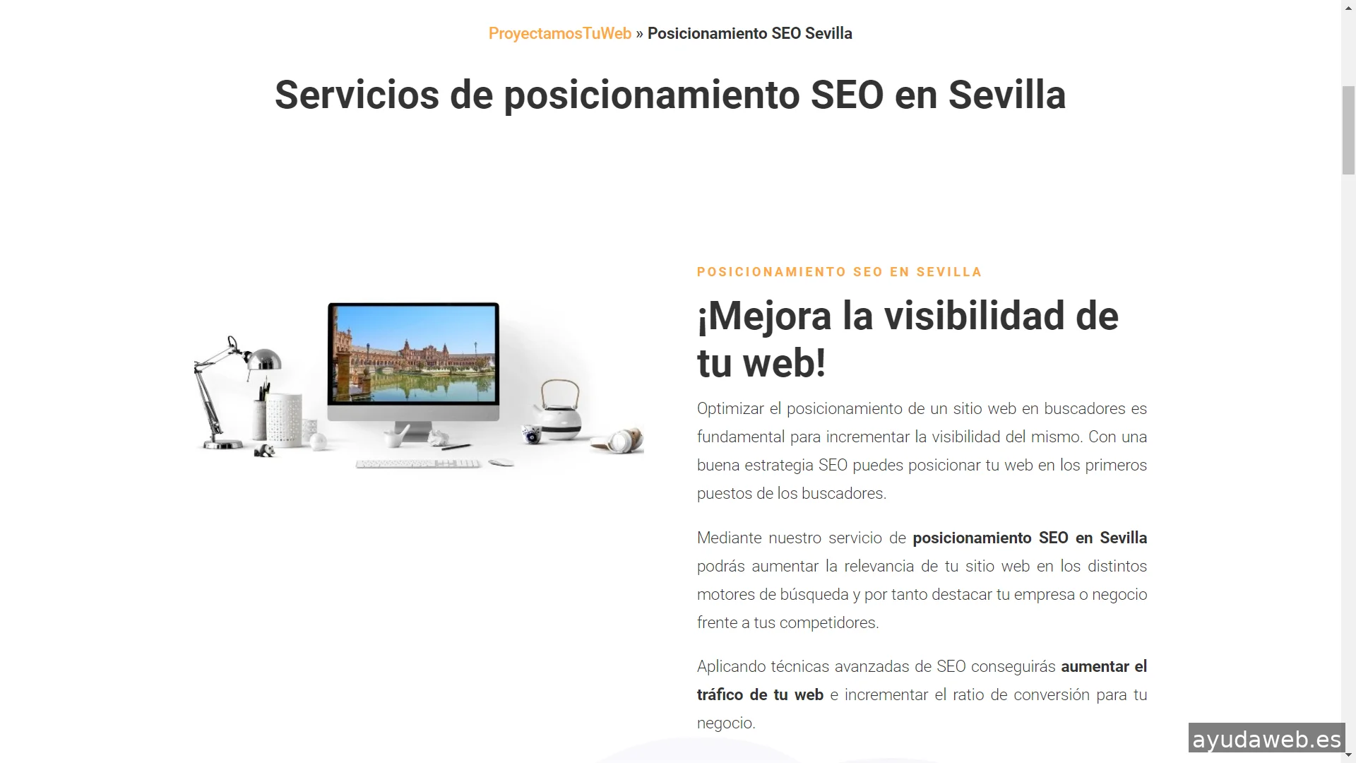 En ProyectamosTuWeb Sevilla somos especialistas en diseño web y SEO. Con nuestros servicios de diseño de páginas web y posicionamiento SEO te ayudamos a alcanzar las metas de tu negocio. Diseño de páginas web en Sevilla: Diseñamos la página web que mejor se adapte a tu negocio o empresa, te aseguramos un trabajo profesional, de calidad y adaptado a tus necesidades. Diseñamos tiendas online que te ayude a incrementar las ventas de tu negocio. Posicionamiento SEO en Sevilla: El posicionamiento SEO determina la visibilidad de tu sitio web y será el encargado de situarlo en los buscadores. Aplicamos las técnicas SEO más avanzadas para que tu web gane posiciones en los buscadores, aumente el tráfico de calidad y mejore las conversiones.