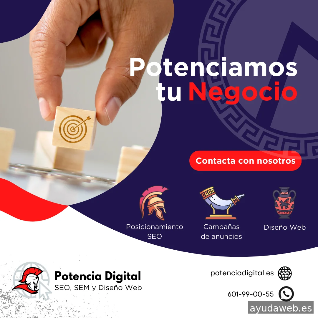 ¡Descubre el poder de Potencia Digital para tu negocio!🚀 Nos apasiona impulsar empresas locales y PYMES hacia nuevos rumbos. Con nuestra experiencia en SEO, SEM y Diseño Web💻, te ofrecemos una presencia digital que captura el entusiasmo de nuevos clientes⚡ Creamos contenido auténtico y relevante, utilizamos las herramientas más actuales, estamos al tanto de las últimas novedades y siempre en continuo contacto con nuestros clientes. Cada estrategia está diseñada pensando en ti, en tu comunidad y en tus sueños de negocio💼, por ello trabajamos como si de nuestra empresa se tratase. De momento no tocamos Redes Sociales, estamos trabajando en ello. ¡Contáctanos hoy sin compromiso y déjanos mostrarte cómo podemos ayudar a mejorar tu negocio!