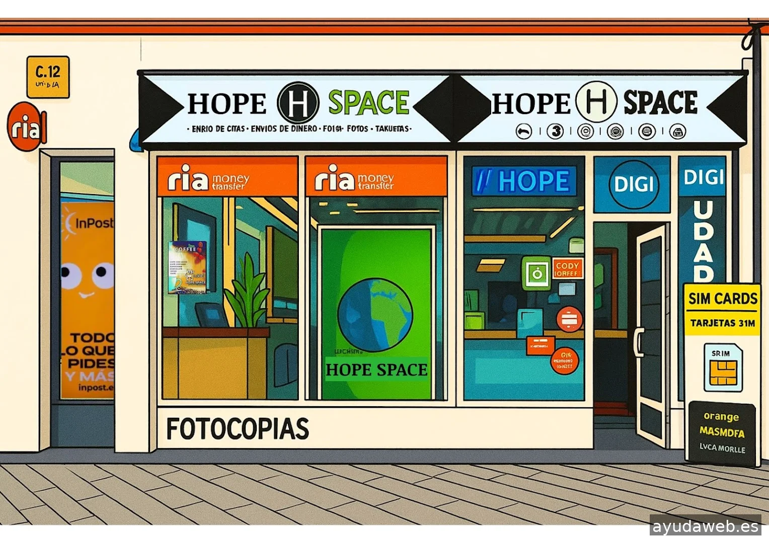 Enviar dinero al extranjero, recargar tu móvil, recoger y enviar paquetería, impresiones digitales y mucho más. "Un lugar lleno de esperanza donde alcanzaras tus sueños". Todo lo que necesitas para tu día a día!