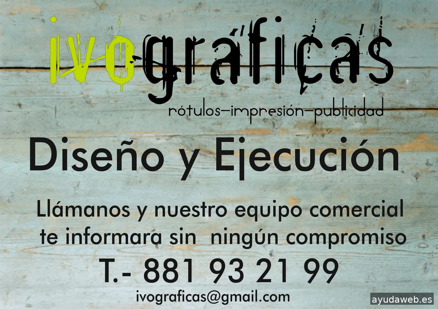Empresa dedicada a rótulos, impresión, regalo publicitario y decoración de locales comerciales. Ivográficas lleva más de 25 años prestando servicio de impresión, rotulación y publicidad tanto a clientes como a distribuidores. La profesionalidad de nuestro equipo humano y los modernos medios de trabajo, nos permiten ofrecer un precio y una ejecución altamente competitivos. Impresión gran formato. Vinilos Decorativos. Rotulación de Flotas. Decoración Comercial. Letras Corpóreas. Imprenta Digital. Diseño y Montaje de Stand. Vallas Publicitarias. Rótulos Interior/Exterior. Regalo Publicitario. Buzoneo.