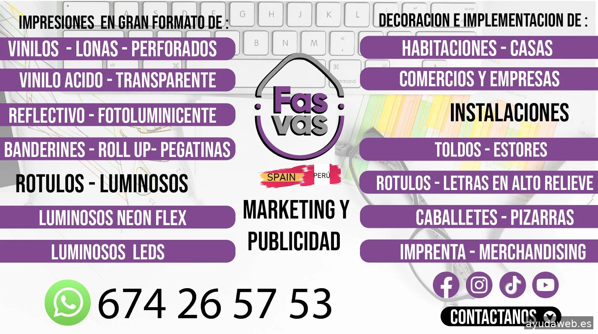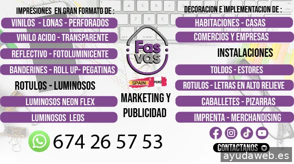 empresa dedicada al rubro publicitario , impresiones de vinilos , lonas , roll up , tarjetas de visitas , flyers , recetarios , carpetas , notas de pedidos, camisetas , gorras , mecheros , lapiceros, gorros , polos, también fabricamos rótulos , letras corpóreas en pvc , metacrilato, rótulos neon , leds , fabricamos toldos a medidas , estores , capotas . realizamos instalaciones y asesoria en decoracion para negocios , locales , casas , pisos, ambientes para niños, etc.