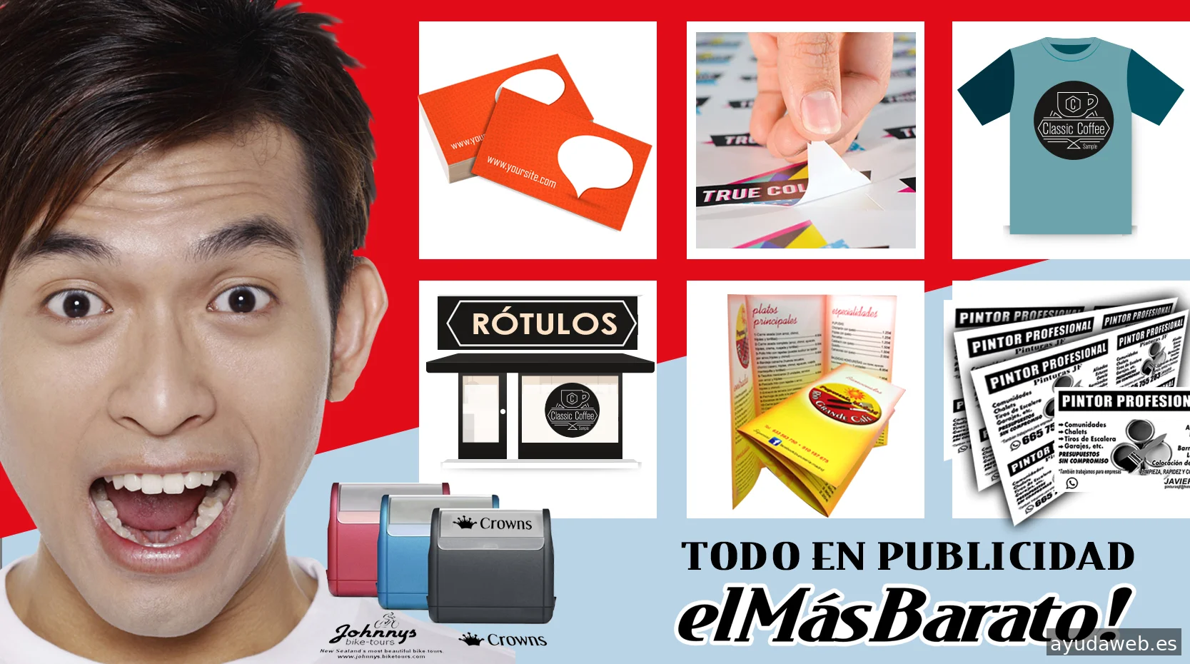 El Más Barato es una agencia de publicidad creada especialmente para pequeños negocios. Engloba todos los servicios, desde la creación gráfica de piezas publicitarias hasta su impresión y distribución, además de estrategias de marketing, creación de una imagen corporativa, difusión de una marca en productos, en eventos o en distintos soportes publicitarios. Nuestra experiencia de trabajo para grandes empresas, durante más de 20 años, la dedicamos ahora a los pequeños negocios, adaptándonos a sus servicios y a su presupuesto para dotar a nuestros clientes de múltiples posibilidades en servicios publicitarios, que parten desde el diseño gráfico y la creatividad. Nuestros logros, premios y distinciones en el mundo de la publicidad avalan n