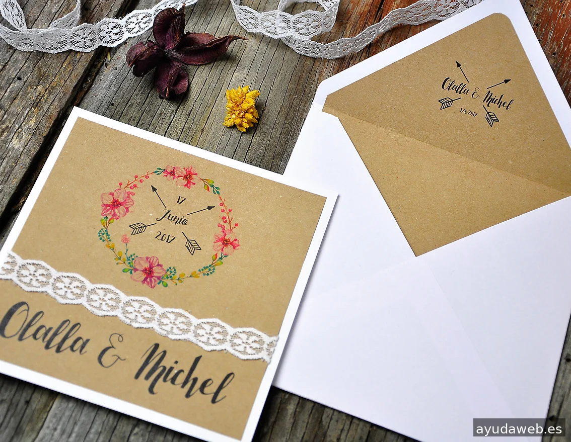 Invitaciones de boda personalizadas estilos vintage, natura, floral. Libros de firmas personalizados