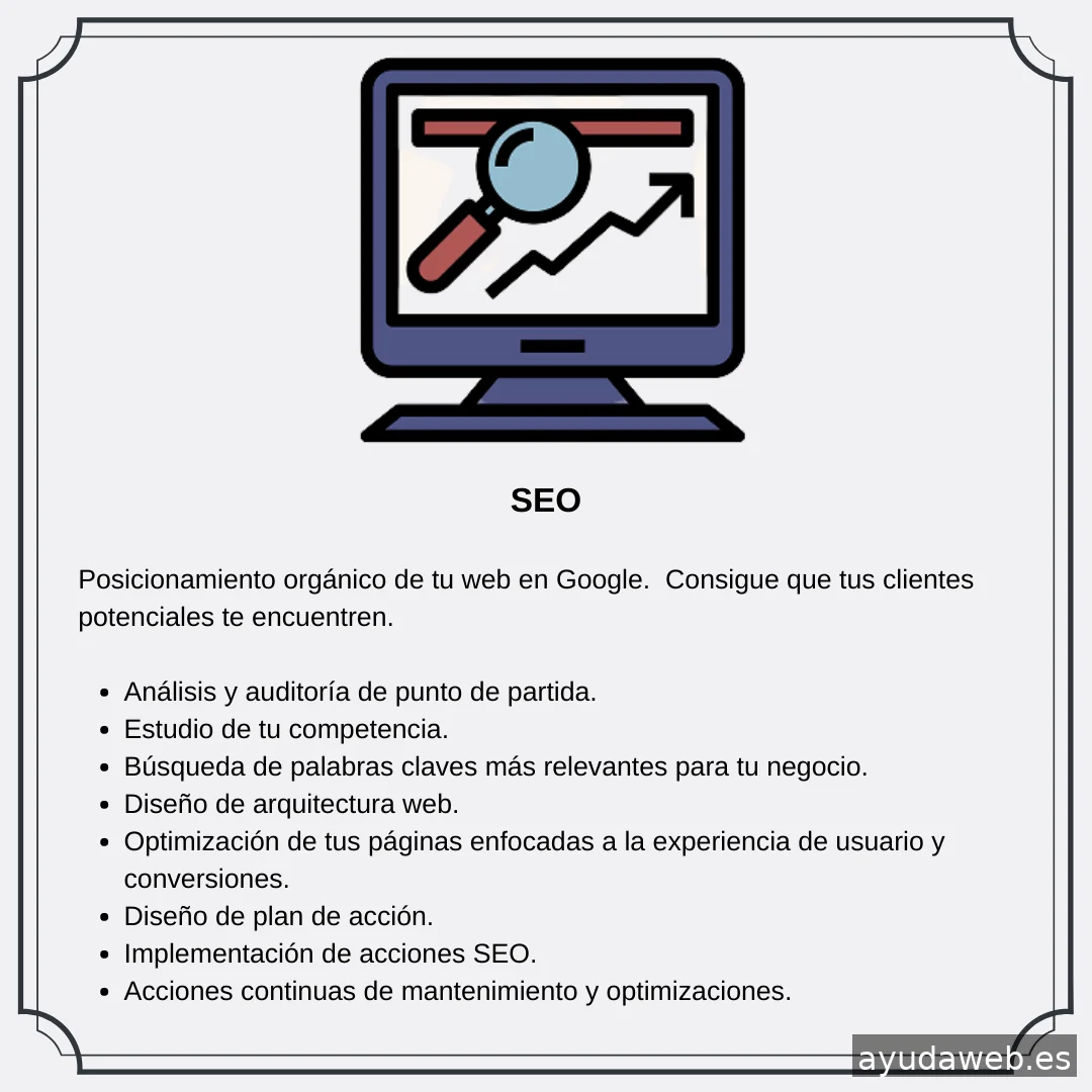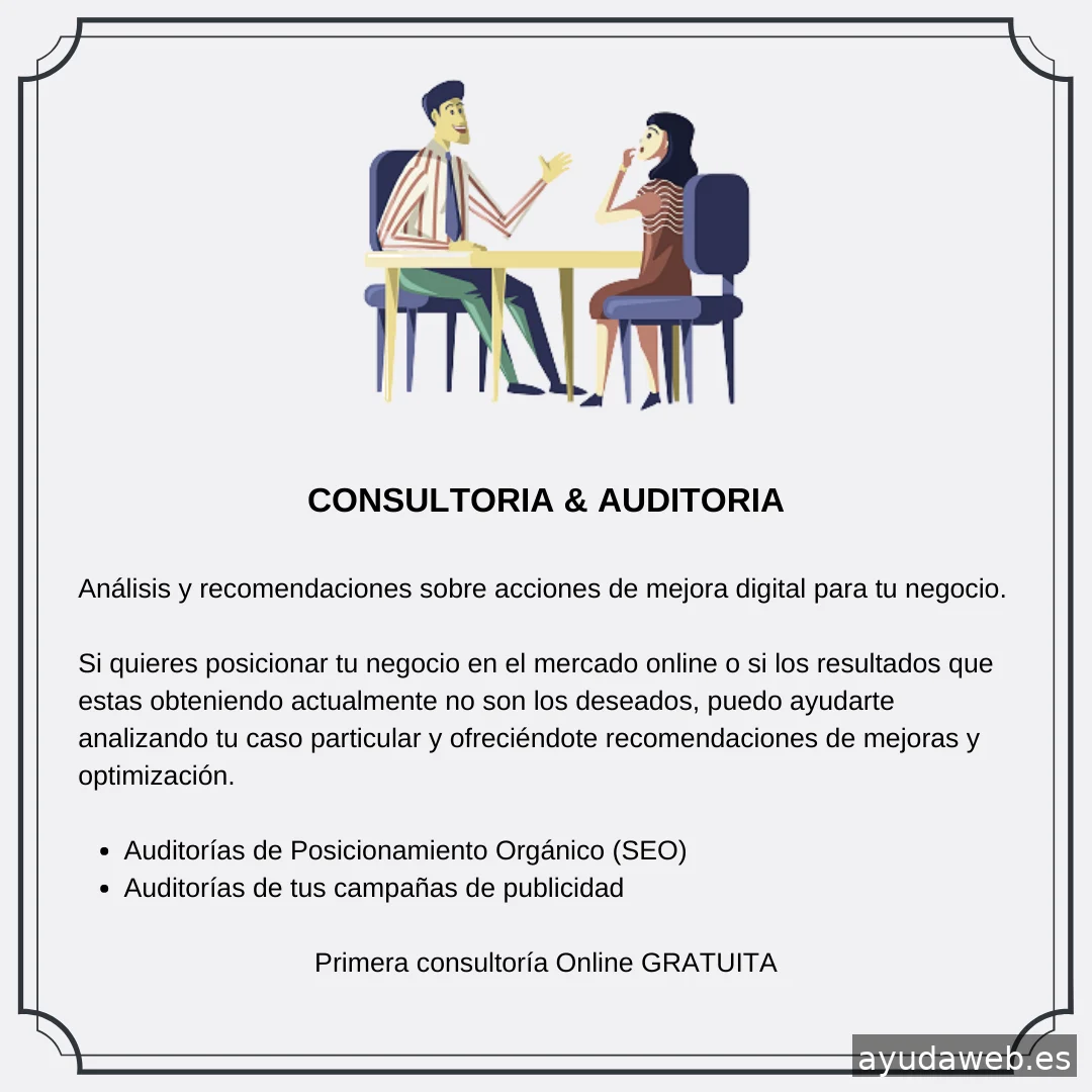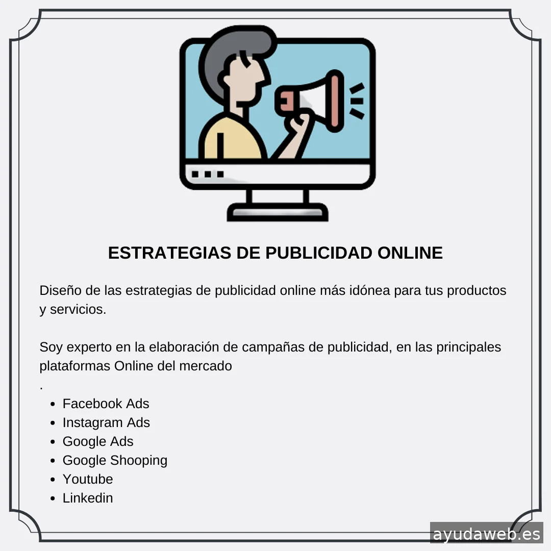 Especialista en Seo Local y en Estrategias & Gestión de Campañas de Publicidad Online. Te ayuda a conseguir la máxima visibilidad online para tu negocio y llegar a tus clientes potenciales. Consigue las maximizar tus ventas rentabilizando al máximo tu inversión. Mis Servicios : ✅ Consultor SEO Local | Posicionamiento orgánico de tu web ✅ SEM : Estrategia, diseño y creación de campañas de publicidad online ✅ Consultoría y Auditoría