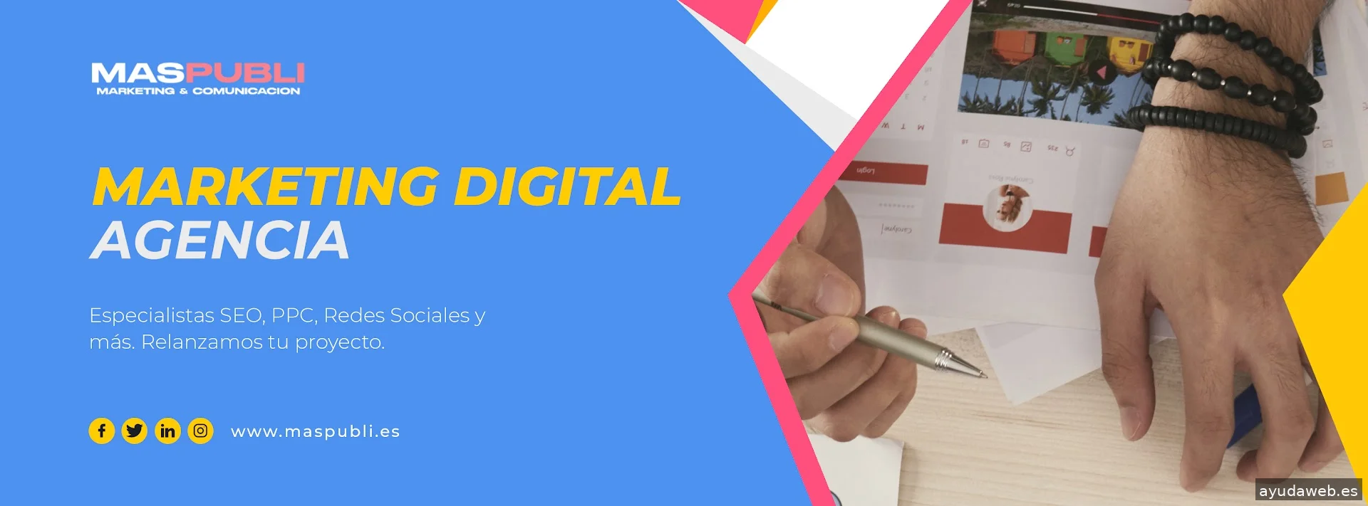 Agencia de marketing digital con más de 12 años de experiencia. Somos expertos en Google Ads, donde rentabilizamos cada euro invertido de forma garantizada, consiguiendo conversiones y ventas de forma recurrente y previsible. Además, contamos con especialistas consultores en SEO, capaces de posicionar tu página web en las primeras posiciones de Google para las palabras clave más relevantes de tu sector, aumentando el tráfico cualificado y, en definitiva, generando negocio para tu proyecto. Nuestro equipo de diseñadores web Wordpress han desarrollado proyectos de toda índole con la ventaja de crear sitios web orientados al posicionamiento. Y no solo eso, contamos con gestores de redes sociales, email marketing y mucho más.