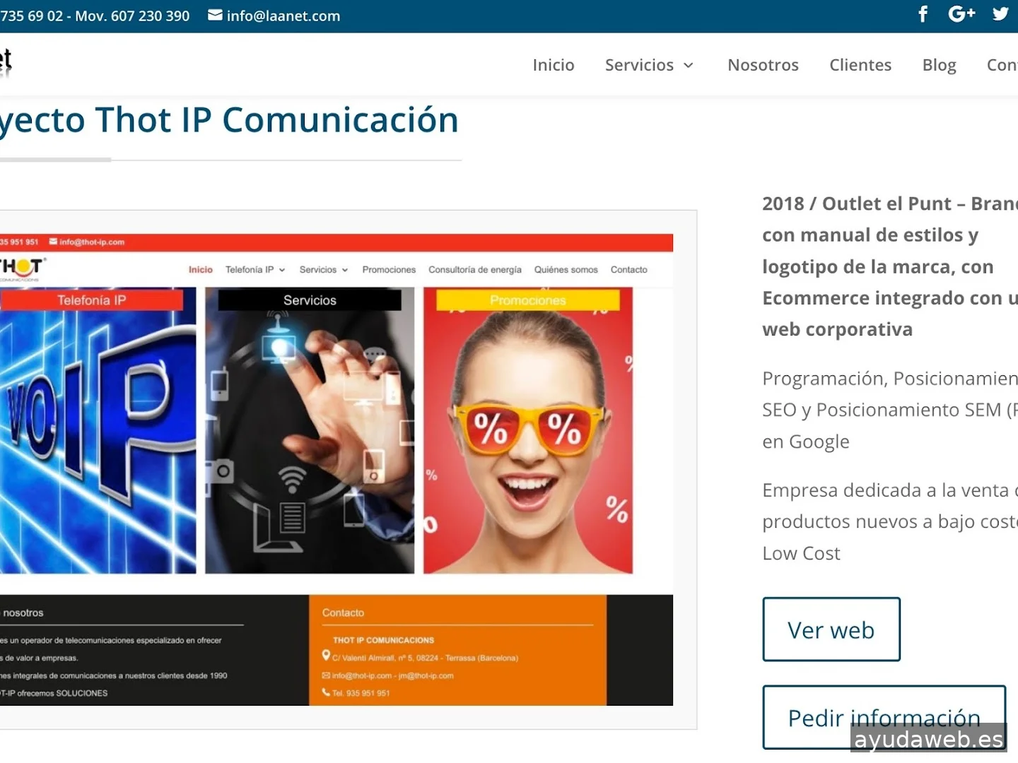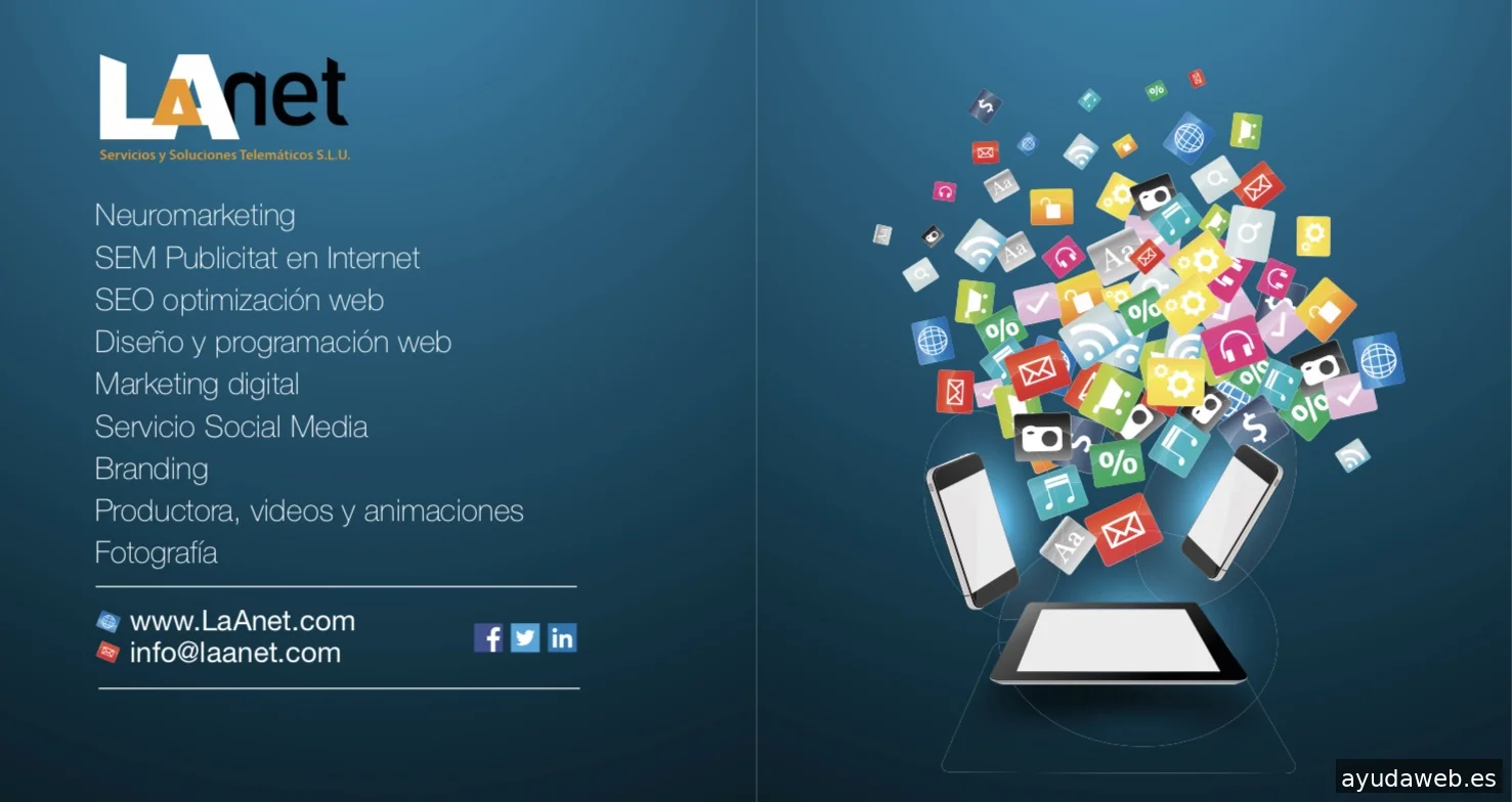 Empresa del sector TIC centrada en aplicaciones informáticas desde 1998. Realizamos campañas de Marqueting Online orientadas a SEO, SEM y SMO. Complementamos nuestros servicios con formaciones en Neuromarketing, Branding, Diseño Gráfico, Catálogos Interactivos y todo tipo de Fotografía, Videos y Animaciones. Nuestro principal propósito es la innovación tecnológica y la plena orientación al servicio de nuestros clientes. LaAnet le dará la tranquilidad y garantías para afrontar cualquier proyecto. Contamos con profesionales con experiencia, que le escucharan y asesoraran para llevar a cabo sus proyectos con un servicio totalmente personalizado. Ofrecemos servicios completos y tratamiento individualizado.