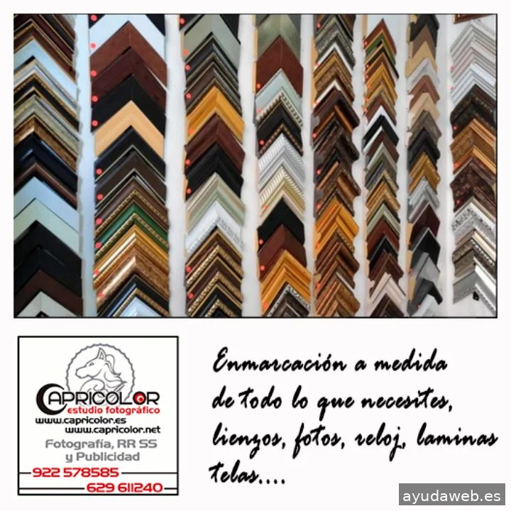 Capricolor Estudio Fotográfico, fundado en 1998 en Tenerife, ofrece fotografía profesional de bodas, comuniones, books, familias, retratos, publicidad, producto y eventos. Combinamos creatividad, técnica y equipos avanzados para crear imágenes emocionales y de alta calidad. Realizamos revelado al instante, fotos DNI/pasaporte, y producimos enmarcaciones, álbumes, tazas, metacrilatos, roll-ups y más. También desarrollamos diseño gráfico y gestión de redes sociales para empresas. Con amplia experiencia y valoraciones excelentes, somos uno de los estudios fotográficos de referencia en Tenerife.