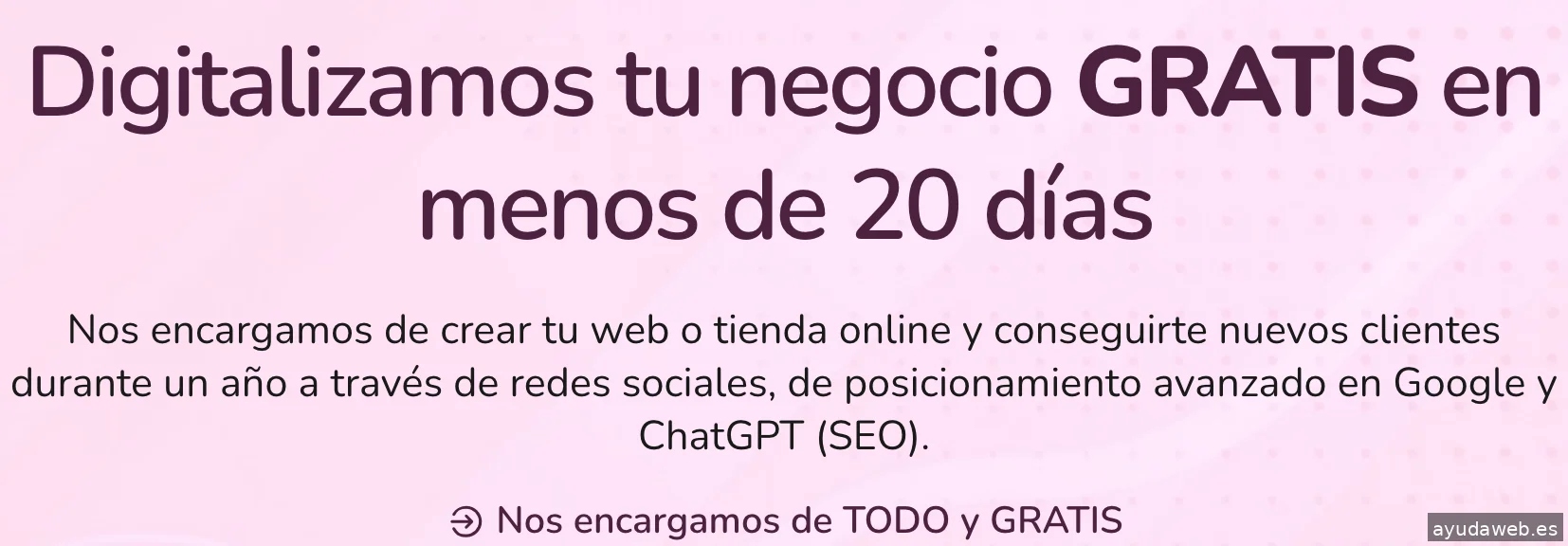 Digitalizamos tu negocio GRATIS en menos de 20 días. Nos encargamos de crear tu web o tienda online y conseguirte nuevos clientes durante un año a través de redes sociales, de posicionamiento avanzado en Google y ChatGPT (SEO). Nos encargamos de TODO y GRATIS Gracias a los fondos europeos Next Generation y a BierzoSEO puedes multiplicar tus ingresos totalmente gratis a través del canal online. Nos encargamos de: Solicitar tu kit digital en menos de 24 horas. De crear una web o tienda online, en menos de 20 días, que haga que tu negocio despegue y vendas más de lo que necesitas. Conseguirte nuevos clientes durante un año a través de redes sociales y de posicionamiento avanzado en Google y apareciendo en los resultados de ChatGPT.